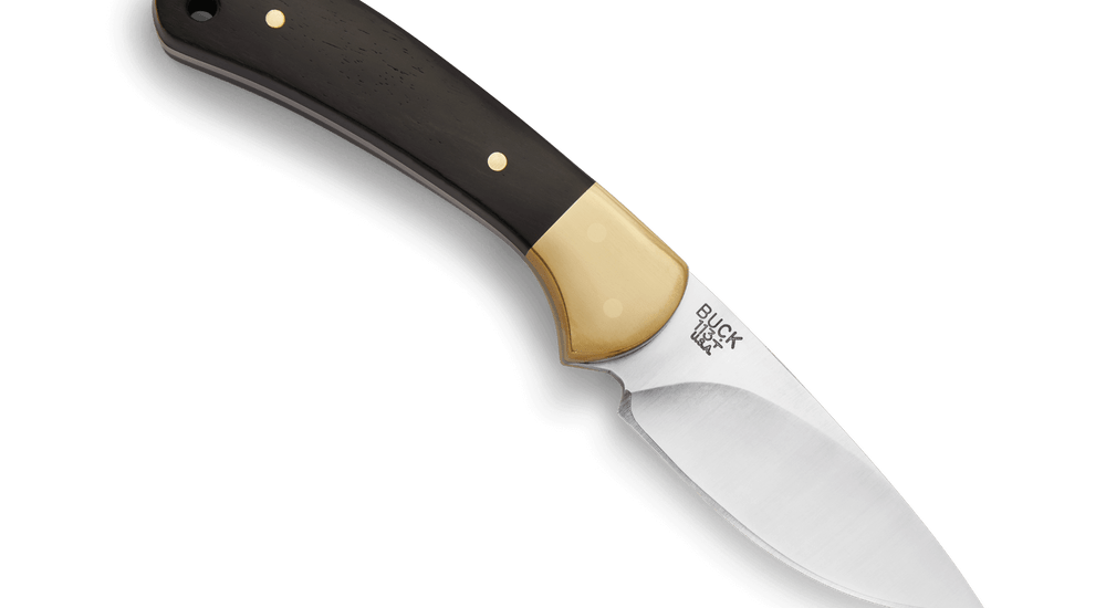 • BUCK KNIVES SM SKINNER, AFRICAN EBONY W/BRASS BOLSTER, SATIN FINISH BLD
