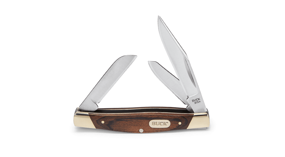 • BUCK KNIVES 373 TRIO 3-BLADE FOLDING POCKET KNIFE WITH WOOD HANDLE