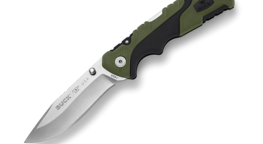 • BUCK KNIVES PURSUIT, LG FOLDER BLACK/GREEN MOLDED HDL