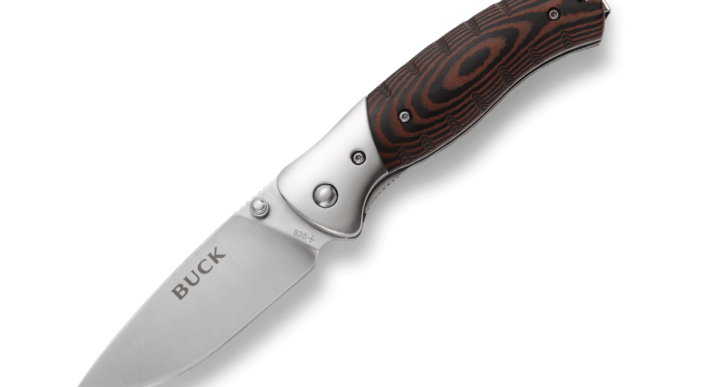 • BUCK KNIVES SLKIRK (SM) FOLDER, BLACK/BROWN MICARTA HANDLE
