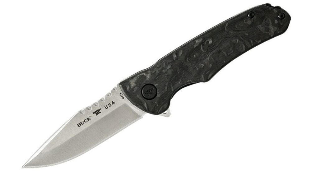 BUCK KNIVES SPRINT, PRO, MARBLED CARBON FIBER HDL, BLK HARDWARE – 0841CFS2-B