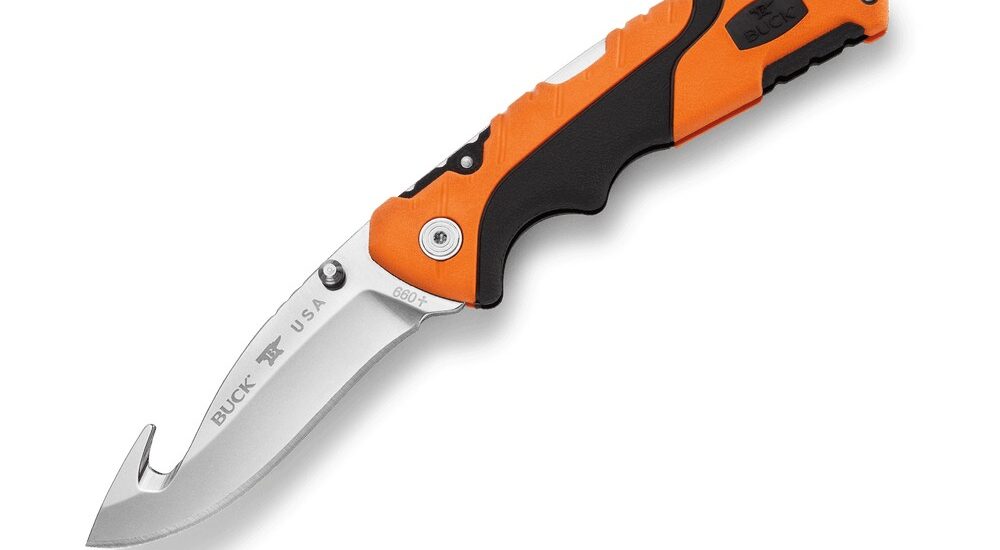 BUCKS KNIVES PURSUIT PRO, LG, ORANGE/BLACK MOLDED HDL, GUTHOOK – 0660ORG-B