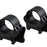 This is a pair of Optisan QRA (Quick Repeatable Accuracy), Medium profile scope rings. They feature a Quick Detach (QD) lever mechanism for fast attachment and detachment while maintaining zero. They fit 30MM scopes and mount onto a Weaver/Picatinny rail, finished in Matte Black.