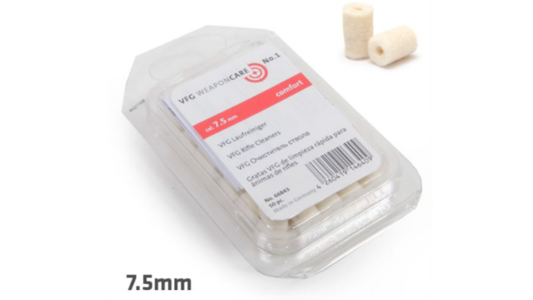 The 7.5 mm felts are recommended for the following calibres: 7,5 Suisse, 7,62 mm, 30 – 36, .300 Win. Mag., 300 SAVAGE, .30 Rem. 308 Win., 7,65 mm, 7,64 Para, 32 S & W