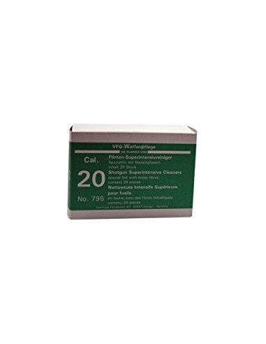 The VFG Cleaning Felt Pads Cal. 20 25Pcs Superintensive are high-quality accessories designed for the maintenance and cleaning of firearms in caliber 20. These felt pads are made from a highly absorbent material that effectively removes residues of gunpowder, lubricants, and other impurities from the bore and chamber. The superintensive design of the pads ensures thorough cleaning, thanks to their ability to conform perfectly to the internal surfaces of firearms. Each pack contains 25 felt pads, providing enough for numerous cleaning sessions. Regular use of these pads helps maintain firearms in optimal condition, improving performance and extending their lifespan. The pads are easy to use and compatible with standard firearm cleaning systems.