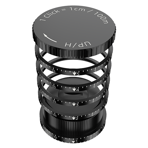 The ZERO-Stop already installed in the standard version of the SPECTRA 1,6-13x44i can be used with both turret variants. The GBT has 5 superimposed rings for distance up to 500 m.
