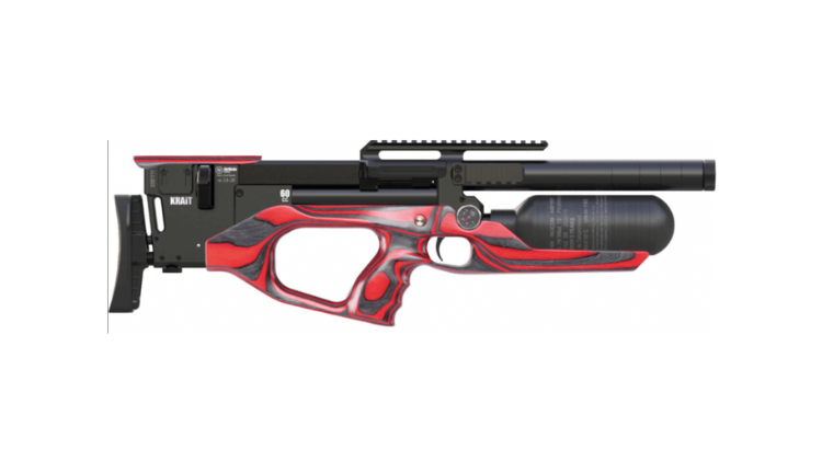 The AirMaks KRAIT W is a precision-built pre-charged pneumatic (PCP) air rifle with a 400 mm rifled barrel, ergonomic adjustable laminated red stock, and .22 caliber (5.5 mm) capability. Designed for target shooting and small game use, it combines adjustable ergonomics, a regulated air system, and tactical accessory rails for optics and attachments. Reliable, accurate, and ready for customization.