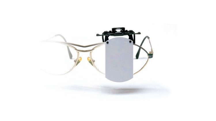 Flip-up blinder for the non-aiming eye.
