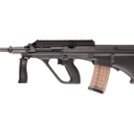 The Steyr AUG A3 Z QCB LR SWAT is part of the modern AUG rifle family produced by Steyr Arms. The rifle uses the bullpup design, where the action and magazine are located behind the trigger, allowing a full-length barrel in a compact overall weapon length while maintaining balance and maneuverability.