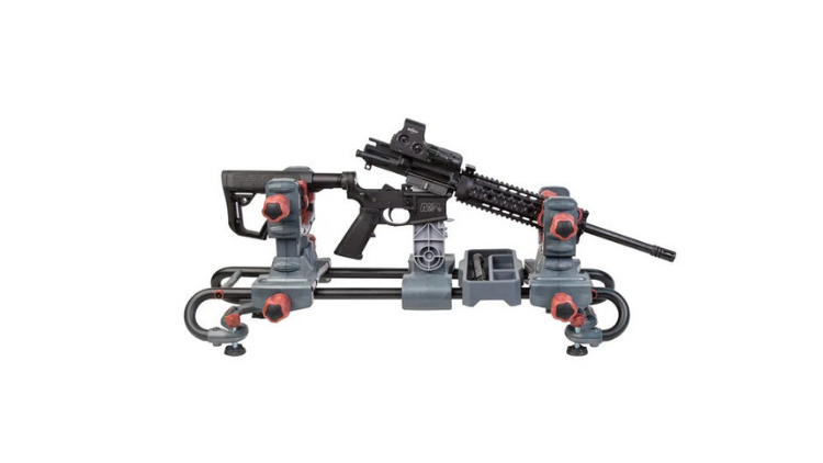 The dual clamp technology rigidly holds any firearm shape in place, while the rigid steel tube frame structure allows for complete access to your firearm or crossbow. The front and rear clamps are both height and length adjustable, and feature fast-turn knobs allowing for quick clamping. The solvent-resistant accessory and tool trays are movable and removable to stand up to even the toughest jobs.