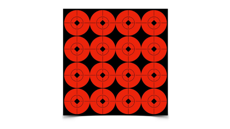 Convenient Target Spots® Self-Adhesive orange Targets create instant bull’s-eyes for all types of target practice.