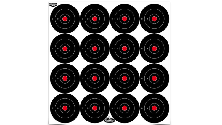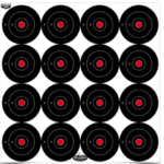 Spot your shots easily! “Intense white” splatter offers superior downrange contrast. Multiple target facings on one sheet make for more shooting time and less target changing time. 16-3 inch targets on one convenient sheet.
