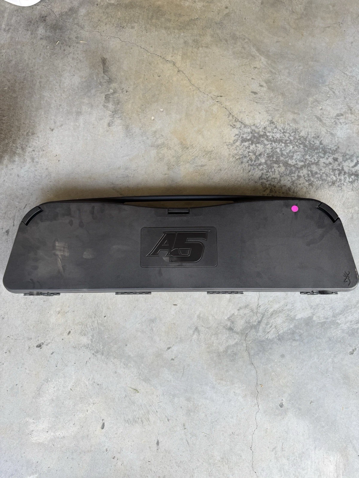 Interior :”High-Density Padded Foam and Contoured Inserts designed to snugly hold the A5 and its accessories (chokes, manual, etc.).”