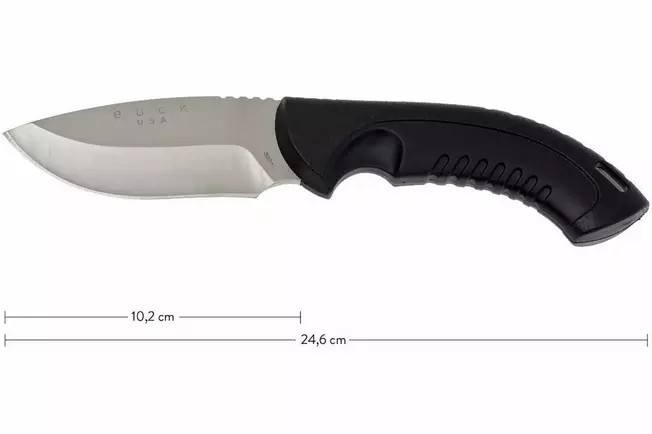 The Buck 392 Omni Hunter is a heavy-duty fixed blade designed for efficiency in the field. Featuring a 4-inch drop point blade with a generous “belly,” it is specifically engineered for skinning and field dressing large game.