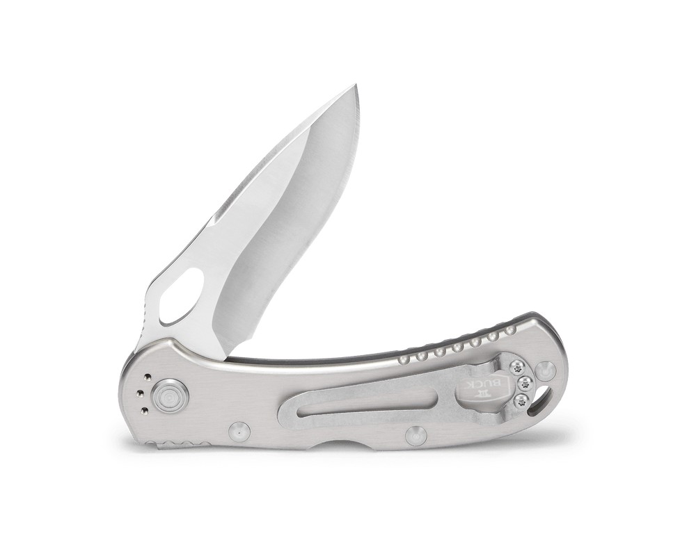 BUCK KNIVES SPITFIRE, ALUMINUM ANODIZED GRAY HANDLE/GREEN LINER, BOX – 0722GYS1-B