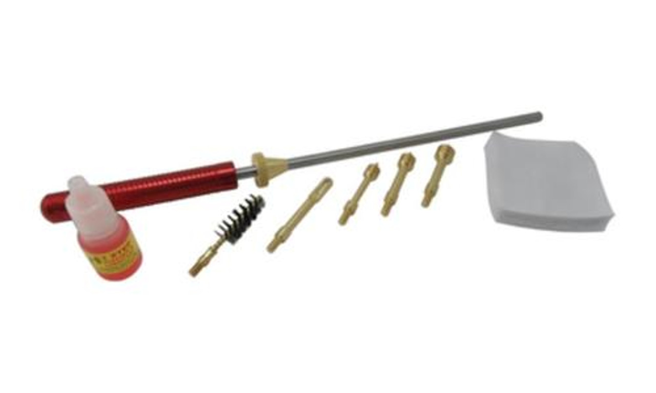This cleaning kit features a rod, patch holder, patches, jags, brushes, and solvents. The multi-caliber cleaning kit works great when it comes to cleaning your handguns after a long day at the range. This kit works with .38, 9mm, .40, 10mm, and .45 caliber handguns.