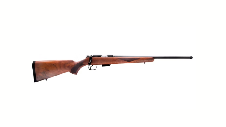 A refined bolt-action .22LR rifle featuring a 20-inch blued barrel, factory-threaded muzzle (1/2″ UNF), and a premium hand-oiled walnut stock, offering a modern shooting experience with 250 years of London heritage.