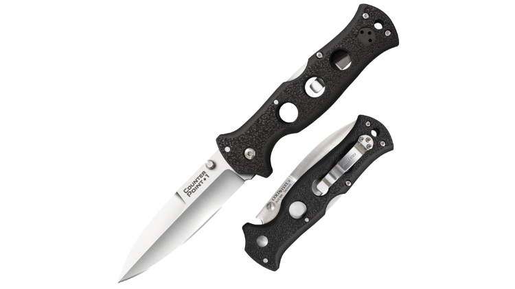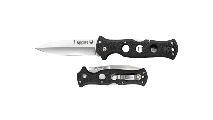 The Counter Point series was developed by Cold Steel to translate the penetrating capability of traditional stiletto-style daggers into a practical folding knife. The Counter Point I features a long, narrow spear-point blade with a pronounced false edge that provides excellent piercing ability and slicing performance.