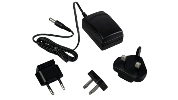 Supplied with plug-in cable and power outlet fittings for UK, EU and US.