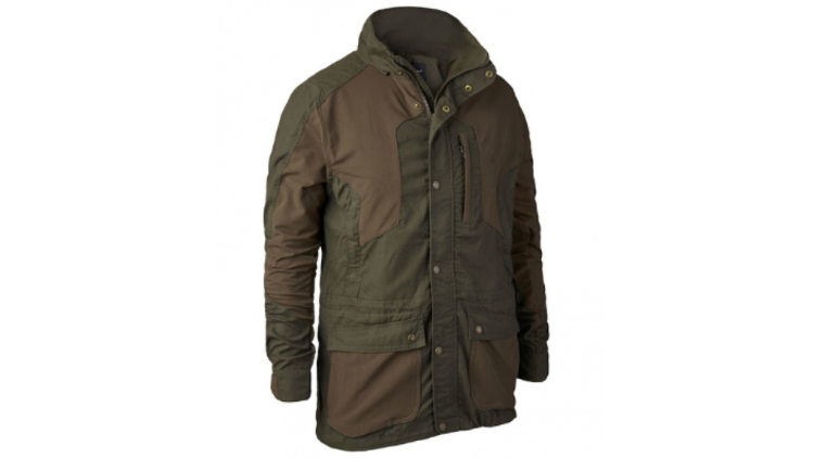 The Strike Jacket Long is treated with Teflon Shield+, which repels water and dirt and helps the fabric dry faster. It includes multiple spacious pockets, a hood stored in the collar, articulated elbows for better mobility, adjustable cuffs, and a two-way zipper—making it suitable for hunters and outdoor users who need comfort and functionality in the field.