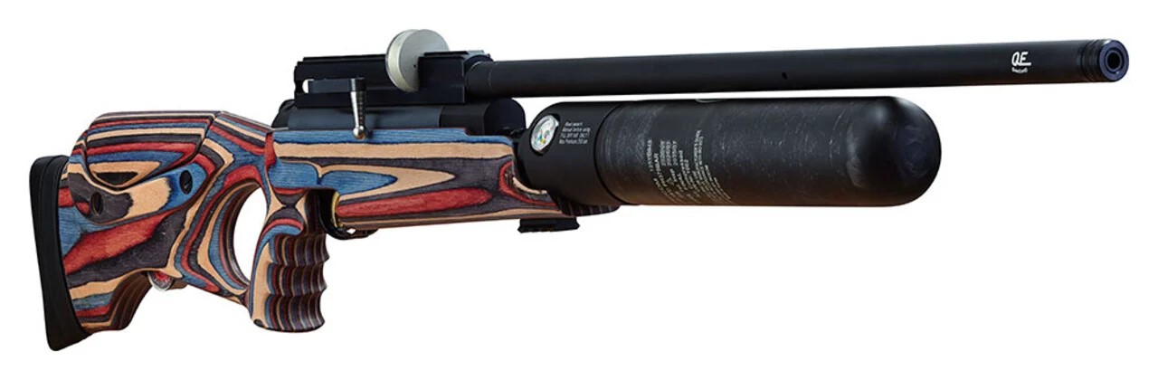 Manual loading, side lever action, pre-charged pneumatic (PCP) air rifle.