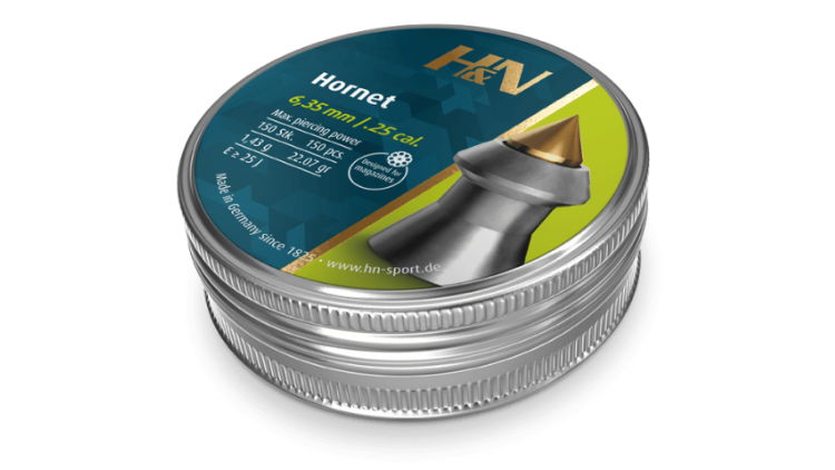 Medium-weight, accurate hunting pellet for medium ranges. High impact and penetration. Aerodynamic design through metal tip. Controlled expansion. Smooth with brass tip.