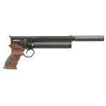 The Huben GK1 Pistol is a standout in the world of airguns, bringing the extreme power and high-capacity magazine of the K1 into a smaller, more versatile package. Weighing only 1.2 kg and measuring 325mm in length, the Huben GK1 features adjustable power settings, iron sights, and a dovetail rail for adding optics. Its unmatched power and accuracy enable performance at ranges previously unimaginable for air pistols.Now available in .177, .22, and .25 calibers and at a nice price point, the Huben GK1 is perfect for users needing to adhere to energy restrictions without sacrificing performance. The pistol can be equipped with a 1/2-20 UNF adapter, allowing for the addition of a suppressor to reduce noise and enhance practicality in various environments.Following the elegant style of the Special Edition K1, the Huben GK1 boasts an ergonomic walnut grip. Each Huben pistol GK1 comes with a lightweight hard case, making storage and transport easy and convenient.