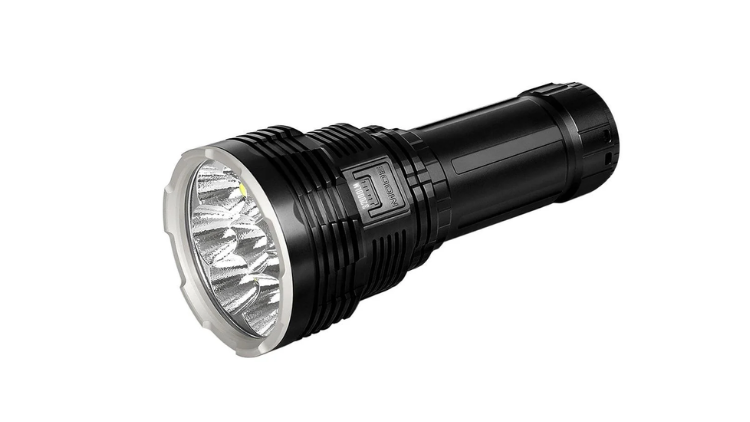 The IMALENT DX80 is a powerful handheld searchlight engineered to deliver extreme brightness and wide flood illumination. It uses eight CREE XHP70 second-generation LEDs, producing a maximum output of 32,000 lumens while maintaining a beam distance of up to 806 meters.