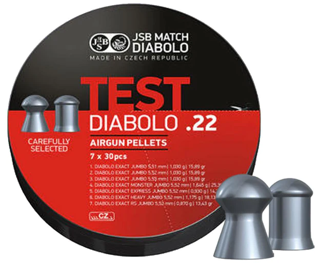 JSB Match Diabolo pellets have a reputation of being uniform in size and weight, which is why they have a reputation for superior accuracy in air rifles and air pistols. This combo tin is a good way to test great pellets to find the right ones for your air guns.