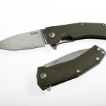 KUR is equipped with a Sleipner steel stone-washed blade and it is provided with a liner lock blade locking system. The opening and closing movements feature the exclusive IKBS ball bearing system. The 3D machined G10 handle is available in three versions: orange, green or black. The flipper is an integral part of the blade. Designed by Molletta, KUR is provided with stainless steel liners, an AISI 420 steel clip and a 6AI4V titanium spacer. KUR is supplied in a cardboard-box packaging.