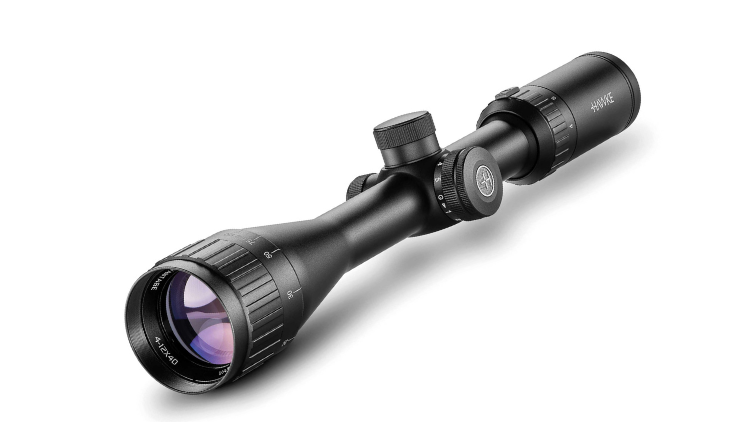 A variable-power riflescope with a 4× to 12× magnification range and a 40 mm objective lens, designed for rimfire shooting applications such as .22 WMR and .22 LR rifles. It includes AO (Adjustable Objective) for parallax correction, which helps maintain a sharp focus at typical rimfire distances.