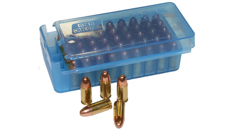 MTM’s Side-Slide Pistol Ammo boxes let you quickly access or tip out precisely what you need. Made of clear plastic and built to last. Comes with load label and MTM’s 25 year guarantee.All MTM Case-Gard’s are MADE IN USA in our factory in Dayton Ohio.