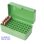22-HORN-10 – Ammo Box 50 Round Flip-Top 22 Hornet.