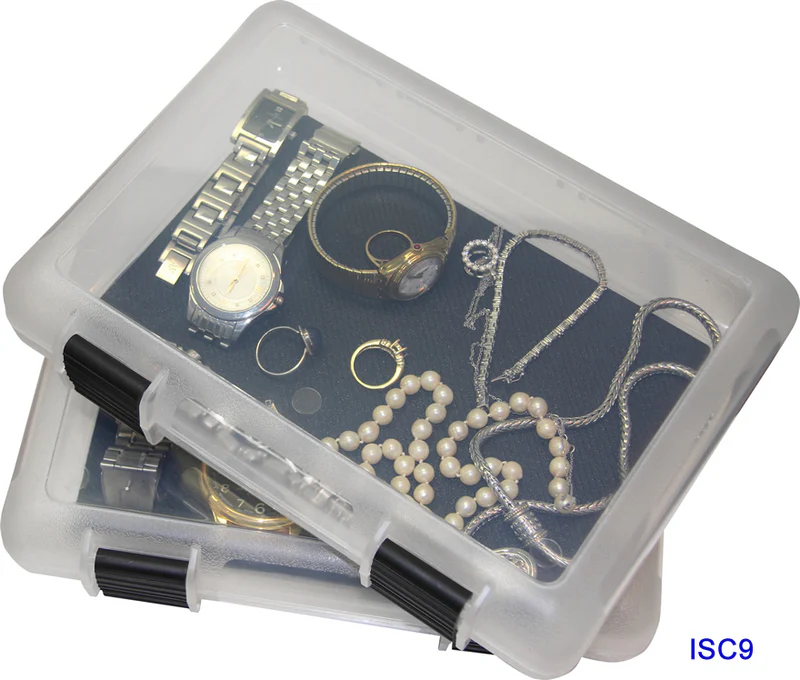 Sold in 3-Packs and made in USA Designed to optimize storage in the most popular size gun safes on the market. Store more handguns in less space. Ideal for storing 101 things, including jewelry, coins, watches, birth certificates, passports, etc.. Made in a transparent plastic, so that you quickly find what you are looking for. The stylish design makes it easy to pull out of the gun safes and to put back in. This gun safe box is the ideal pistol holder and safe accessories case. They come with a soft closed cell foam pad in the bottom, to help protect the items you are storing. Sold in 3-Pack retail units.