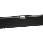 Hard plastic weapon case with Ashlar foam interior, sliding safety locks, and rear metal hinges designed for rifle or shotgun transport.
