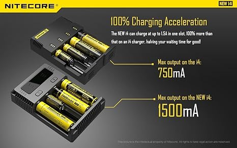 100% Charging acceleration means the Nitecore NEW i4 can charge at up to 1500mA current in one slot.
