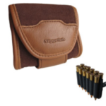 Versatility in leather: An elegant brown leather belt pouch featuring a patented attachment system and interchangeable inserts for ammunition, electronics, or compact optics.