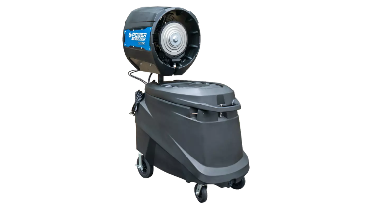 The PB20-A-1F is the 220V variant of the “Mach 4” or “Titan” series. Unlike standard swamp coolers that use wet pads (which can grow mold), Power Breezer uses patented atomization technology. A high-speed centrifugal disk breaks water into microscopic droplets that evaporate instantly, cooling the air by up to 27°F without getting people or equipment wet.