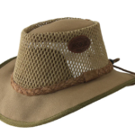 A rugged Sand canvas outdoor hat with lightweight construction, broad curved brim, and ventilated mesh crown ideal for sun protection and breathable comfort during safari, hiking, gardening, or other outdoor adventures.