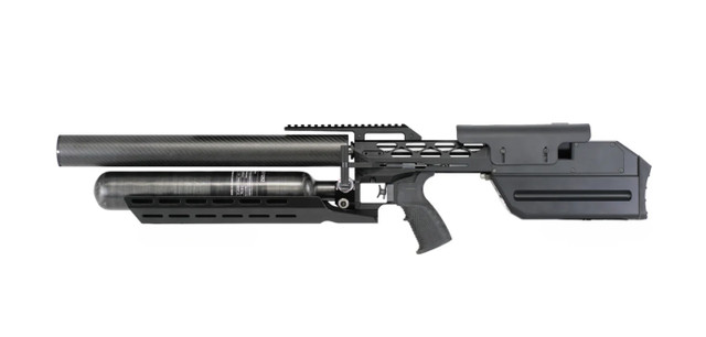 The RTI MORA Standard is a high-performance bullpup PCP air rifle, built for precision and versatility. It features a 60cm (24″) barrel, an externally adjustable twin regulator, and a carbon silencer for reduced noise. The M-Lok rail system allows for accessory customization, while the 740cc (0.74L) carbon bottle provides ample shot capacity. Complete with two magazines and a hard case, the MORA Standard delivers reliability and accuracy in a compact, ergonomic design.