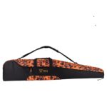 It is equipped with shoulder straps and carrying handles. The case also has a spacious side pocket for transporting accessories, cartridges, or a silencer. The case length is 1340 mm, and the width is 300 mm, measured at the widest part of the case. The case comes in three colors and features the Tikka logo embroidered on the orange version. The Sako polyfade camo versions come in two colors, forest green, and Tikka orange. The camo cases have velcro pads for attaching the Sako or Tikka logo patches included in the package.