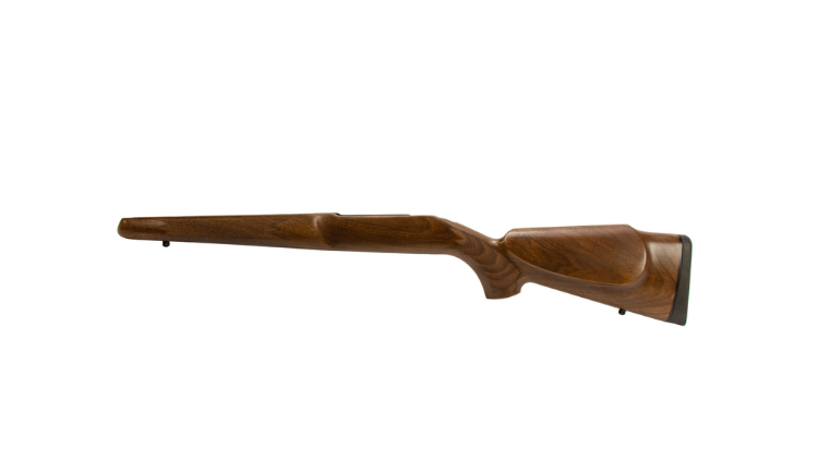 Sako Quad Hunter Varmint Stock, RH. This right handed stock is a Sako factory original replacement component. Compatible with Sako Quad rimfire rifles, this right handed stock features a right hand palm swell and cheek piece along with factory checkering and an oil finish. The stock comes with a factory installed recoil pad and both front and rear sling swivel studs.