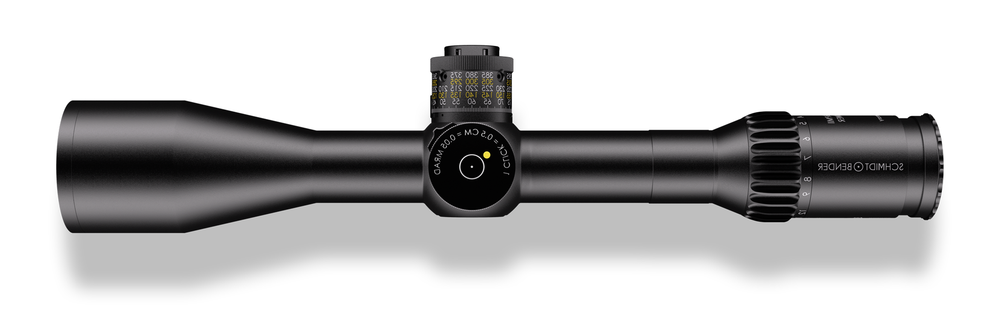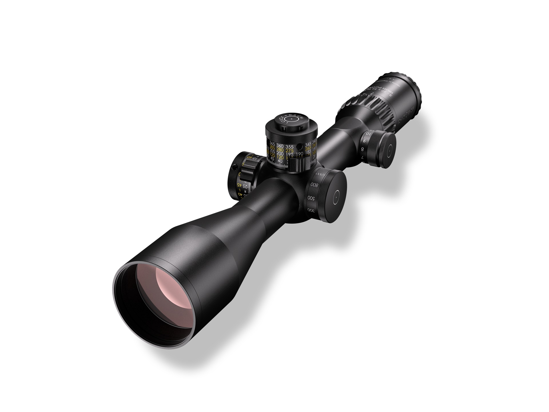 The 3-27×56 PMII High Power can be used from close to extreme distances due to its 9x zoom Diopter Adjustment -3 to +2 | Exit Pupil Diameter 8.7–2.1 mm / 0.34–0.08 in | Eye Relief Distance 90 mm / 3.54 in | Field of View 13.0–1.4 m / 39.0–4.2 ft | Field of View 7.4–0.8° | Illumination 11 | Length 398 mm / 15.67 in | Magnification 3–27x | Main Tube Diameter 34 mm | Mounting System Ring Mount | Objective Diameter 56 mm / 2.21 in | Turrets Elevation/Windage MT II MTC LT / DT II + ZC LT | Adjustment Range Elevation (Internal) 423 cm/100 m | Adjustment Range Elevation 395 cm/100 m | Adjustment Range Windage (Internal) 202 cm/100 m | Adjustment Range Windage ±65 cm/100 m | Click Value 0.5 cm/100 m | Twilight Factor 9.0–38.9 | Weight 1160 g / 40.92 oz | Illuminated Reticle Yes | Turret Rotation Clockwise | Parallax Adjustment Yes