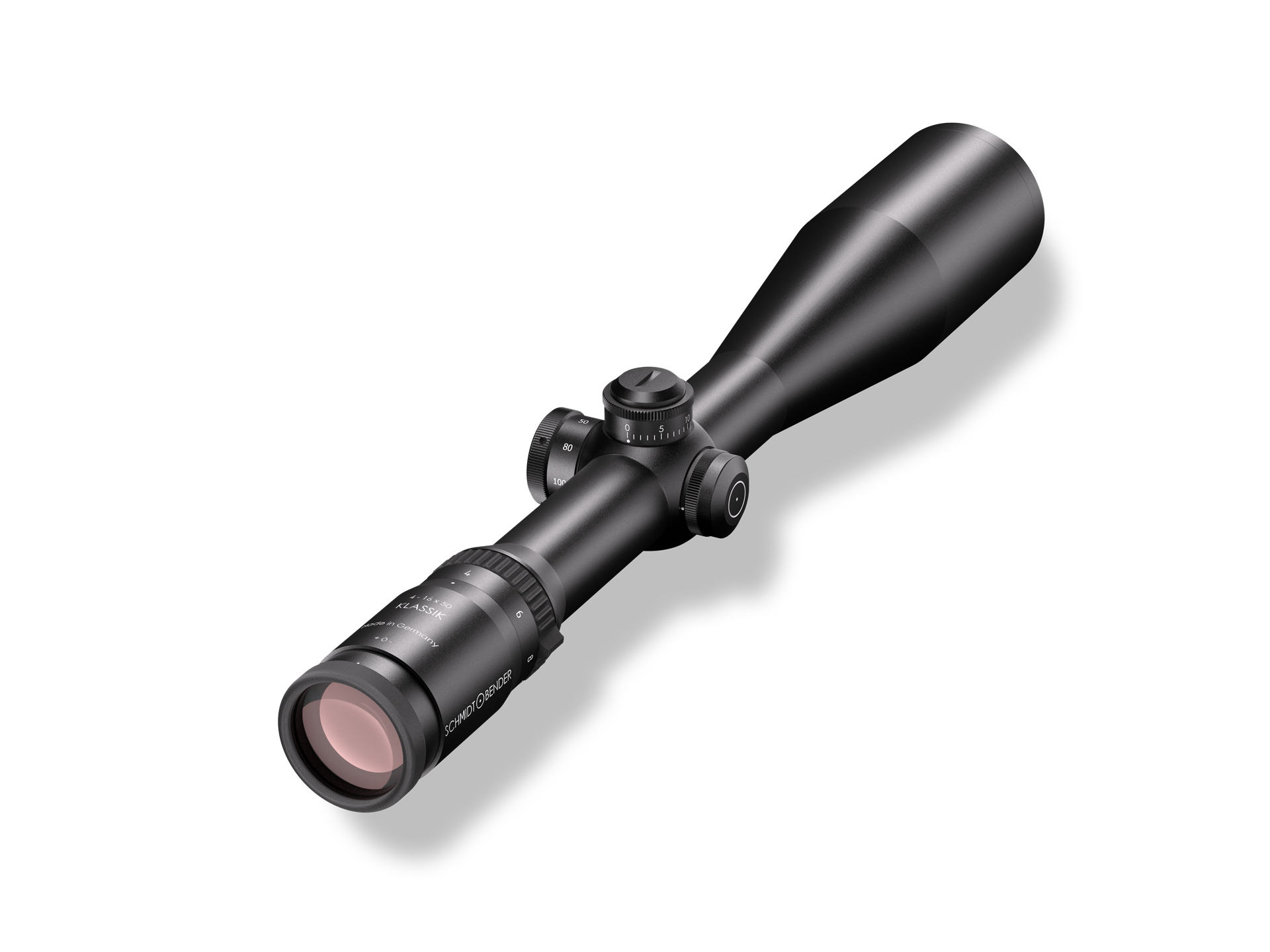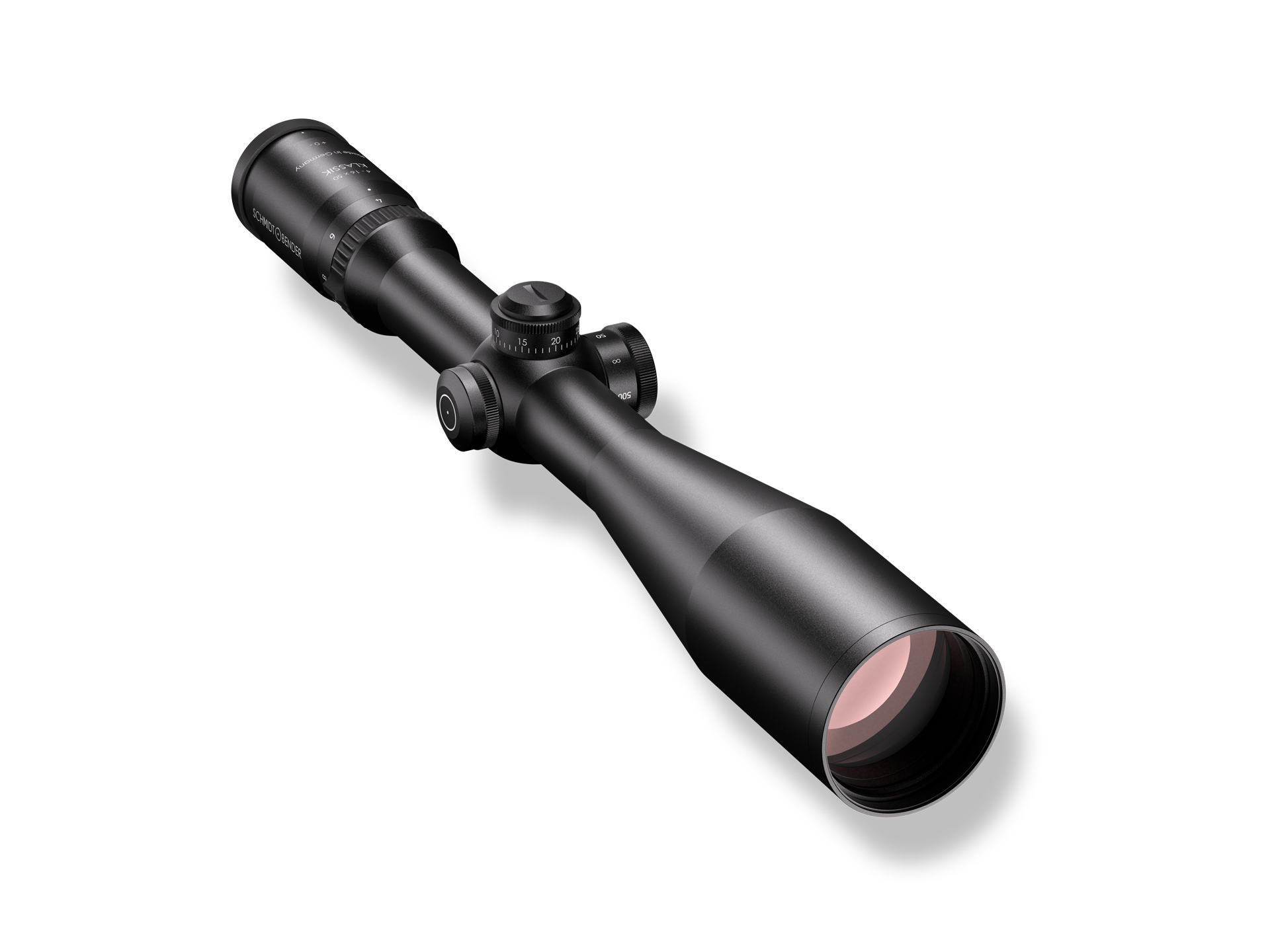 Having a brilliant image quality even on 16x magnification and combined with the comfortable parallax adjustment/side focus the 4-16×50 Klassik is perfect for hunting sensitive and distant game Diopter adjustment (dpt) -3 to +2 | Exit pupil diameter (mm/in) 12,5-3,1/0.49-0.12 | Eye relief distance (mm/in) 90/3.54 | Field-of-view (m/100 m)/(ft/100 yd) 8.3-2.5/24.9-7.5 | Field-of-view (°) 4.8-1.4 | Illumination none | Length (mm/in) 395/15.55 | Magnification 4-16 | Main tube diameter 30 mm | Mounting System Ring mount | Objective diameter (mm/in) 50/1.97 | Turrets (Elevation/Windage) ASV / Klassik CT | Adjustment range elevation (internal) 132 cm/100 m | Adjustment range elevation 16 cm/100 m | Adjustment range windage (internal) 83 cm/100 m | Adjustment range windage ±42 cm/100 m | Click value 0.5 cm/100 m | Twilight factor 12,4-28,3 | Weight (g) 790/27.87 | Illuminated reticle no | Turret Rotation clockwise | Parallax adjustment yes