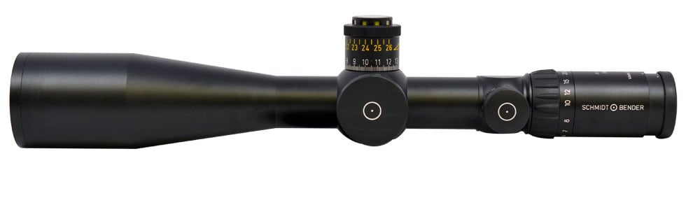 Schmidt & Bender is synonymous with quality and precision. This perception has made Schmidt & Bender one of the leading suppliers of precision scopes in the world Scope Weight: 38.57 oz | Scope Length: 16.4″ | Magnification Range: 5-25x | Objective Lens Diameter: 56 mm | Tube Size/Mount: 34 mm | Turret Adjustment: 0.1 MRAD CW (Double Turn, 26 mils travel) | Parallax: Side Focus 10m–∞ | Reticle: First Focal Plane P4 Fine (Illuminated) | Field of View: 5.3–1.5m @ 100m | Eye Relief: 3.5″ | Finish: Matte Black | Twilight Factor: 13–38.9 | Light Transmission: 90% | Condition: New | UPC: 191992004173 | MPN: 677-911-972-94-67 | Product Type: Scope | Brand: Schmidt & Bender | Date First Available: June 30, 2013 | Last Updated: July 24, 2025