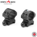 The SPORTSMATCH TO54C Scope Rings provide a robust and precise mounting solution for your 1-inch (25.4mm) riflescope. Designed with the quality and reliability Sportsmatch is known for, these rings ensure a rock-solid connection to any standard Weaver or Picatinny base.