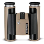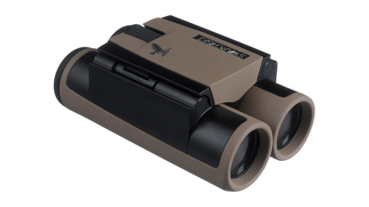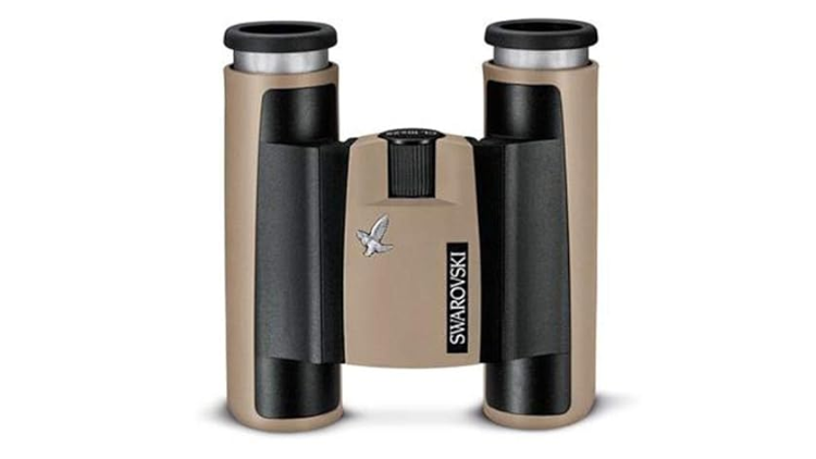 The sand brown 10×25 CL Pocket Traveler Binoculars from Swarovski is a lightweight and convenient close- to mid-range optic that combines the build quality and image quality that nature enthusiasts have come to expect from Swarovski. This addition to their lineup of compact binoculars features a unique dual-hinge bridge that is scalloped on the underside to allow the barrels to fold underneath the concave bridge for a reduced footprint; when folded, the 10×25 measures only 4.3×2.5×1.8″—compact enough for a cargo pocket or side pocket of a daypack. The folding bridge design also gives the CL Pocket binoculars their broad, 48-74mm interpupillary range that can be adjusted to fit children and adults alike.