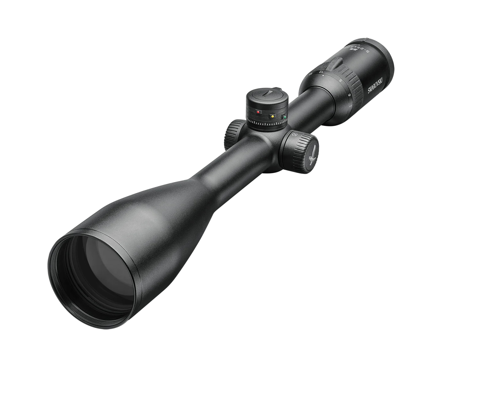 Swarovski Z5 5-25×52 P Ballistic Turret L Riflescope 4W Reticle Reticle, or better know as the Long-Range Hunter Riflescope, is intended and built for optimum long-range shooting precision Its 25x magnification and 5x zoom rightly make this riflescope, an expert in long range shooting and hunting The Swarovski Z5 delivers optical performance rarely achieved by other 25mm riflescopes and offers the weight conscious hunter an extremely high quality optical sight with a broad zoom range Mount Type: Ring Mount | Reticle: 4W | Magnification: 5–25× | Exit Pupil Diameter: 9.6–2.1 mm | Field of View: 7.3–1.5 m/100 m | Apparent FOV: 21.5° | Light Transmission: 90% | Parallax Correction: 50–∞ m | Effective Objective Diameter: 48–52 mm | Eye Relief (Exit Pupil Distance): 95 mm | Field of View (degrees): 4.2–0.84° | Diopter Adjustment: –3 to +2 dpt | Twilight Factor (ISO 14132-1): 13.2–36 | Click Value (Impact Point Correction): 0.25 in / 7 mm | Adjustment Range (Elevation/Windage): 43/25 m @100 m / 1.2/0.7 in @100 yds | Objective Thread: M54×0.75 | Length: 371 mm | Tube Diameter: 25.4 mm | Weight: 495 g | Functional Temperature: –20 °C to +55 °C | Submersion Tightness: 13 ft / 4 m (inert gas filled) | Storage Temperature: –30 °C to +70 °C.