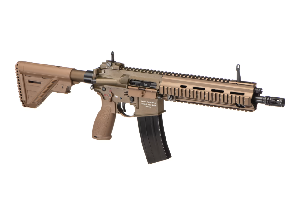 This full-metal and polymer replica features ambidextrous controls, a 30-round gas magazine, adjustable hop-up, and lengths around 790mm with a weight of about 2.9kg. It delivers realistic blowback via gas operation, making it suitable for competitive airsoft. Recommended for 0.20g BBs and compatible with green gas.