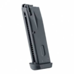 This magazine can hold 23 bullets. Its florplate is made of polymer while the body is made of metal. The inner part of the magazine is a green gas reservoir.